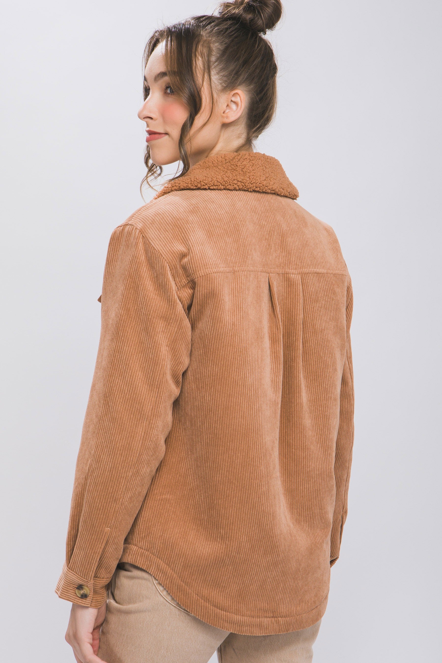 Corduroy Jacket with sherpa collar lining.